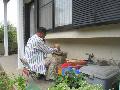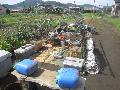 6時起床。夜中に雷が鳴って何度も目が覚めた。畑が気になる。コーヒー飲みながらテレビで台風情報を見る。8時からもやすゴミ出し2個。庭の水はけが悪いので、パイプ周辺の作業をする。9時会計さんと夏祭り景品の打ち合わせをして、「三和苑」に顔を出す。その後福井農園を見に行くと、簡易ハウスが隣の畑の真ん中に飛んでいる。一人では無理なので長男を呼んで、二人で移動する。ハウスは分解して片付けた。その後北Aのベンチ等を整理して、杭とロープで固定する。トマトは園芸用パイプが折れて倒れている。そこで鉄パイプを打ち込み、台風でも倒れないようにロープで固定する。長靴は履いていたが、かなりのぬかるみできつかった。