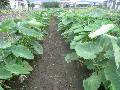 サトイモがしっかり育っています。 台風がくれば葉が吹き飛びます。 |