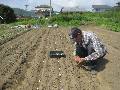 ニンニク4列の種まきです。 種は中国産、収穫は日本産。 |