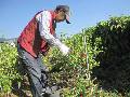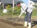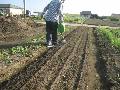 昼食。子守りをしながらテレビを見る。抱っこしていると静かだが、畳に置くと泣き始める。う〜ん、タバコが吸えん。2階でホームページの入力とコメント書きをする。2時過ぎに福井農園に行く。北B2をすべて耕して、溝を掘る。ソラマメの準備完了。兄が来て野菜を持っていく。ピーマンの枝切りを始める。このとき畑の近所の方が来て、卵をもらった。野菜のお礼とのこと。いい人だ。Uさんにニンジンとサトイモを届ける。5時過ぎに帰って、晩酌とテレビ。9時に休む。
