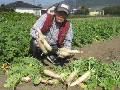 6時起床。コメント書きをする。着替えて7時半に公園に行く。今日は公園の清掃作業の日であるが、皆が来る前に草刈りをする。8時には地域住民と子供会が18人集まり、花壇とプランターの花を引き抜いてくれた。草の袋は17個になり、なんとか持って帰った。9時朝食。そして福井農園に行く。ダイコンを15本収穫したが、これからは毎日とれるだろう。ピーマンの枝を切りながら、大きいものは収穫する。北Dにゴムマット6枚を広げ、道具置き場とする。ここにネットと鉄パイプを置く。東4に近所からもらったニラの株を定植する。帰る途中、野菜セットをMさん・Kさん・Mさんに届ける。