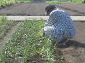 ニンニクの草取りをしています。 野菜が育てば、除草剤はダメです。 |