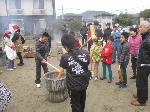 もらってきた石うすでもちつきをします。 大半はもちつき機でこねます。 豚汁もたくさんできました。味もよかった。 |