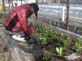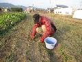 公園の花壇に花苗の定植をしました。 タマネギの草取りです。根は強いです。 |