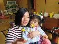 和室で新年のお祝いをしました。 孫の茉莉花を彩香が抱っこしています。 |
