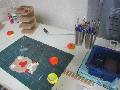 ひな人形工作を中断して、くまモン塗りです。