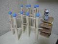 昼食を済ませて、作業室でくまモングッズ6個にニス塗りをする。このあと線引きしたラミン棒を庭に出して、卓上丸のこで切断する。26本の切り出しを済ませ、さらにサンドペーパーでみがく。3時ころに福井農園に出かける。タマネギの畝の溝をホーで草取りする。早めに帰宅して、ラミン棒と木球それぞれにドリルで3ミリの穴をあけ、木球には竹ひごを接着する。26個が完了。5時半夕食と炊事。木球を緑に着色して、これをラミン棒に接着する。ホームページの入力をして、9時半に休む。