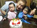 茉莉花のひな祭りをしました。 次男が二人の孫と記念写真。 |