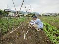 昼食。しばらくくまモンの板を切る。3時半に福井農園に行く。北の畑のカボチャなど果菜類に肥料をまく。エダマメに肥料をまいて土寄せをする。新しくササゲの種を買ってきて、種まきをする。花苗とサツマイモに水をかけ、5時半に帰宅する。夕食・テレビ。野菜の作付け記録を印刷して、今年の秋と来年の春の計画を立てる。しかし、何をどこに植えても連作障がいが出る恐れがあり、頭が混乱してきた。悩みながら9時半に休む。