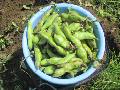 一人分はバケツ1杯と決めて、ソラマメの収穫です。