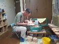 アガチス材を一定の長さで切りました。 外は大雨です。こんな時は工作します。 |
