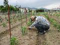 少し早いですが、タマネギを少し収穫しました。 ピーマンの脇芽をつみました。腰が痛い。 |