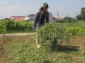 北A1の草刈りです。ニンジンとサトイモがあります。 刈り草は北Eに捨てます。山のように積んでいます。 |