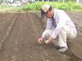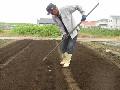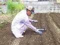 いよいよダイコン(青首宮島)の種まき開始です。 畝は3列なので、時期をずらして種まきします。 |
