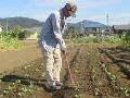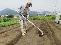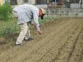 北C1にタカナとシュンギクの種まきです。 東3で溝を掘って、3列の畝作りをしました。 |
