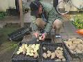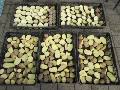暖かくなるのを期待して、種ジャガを切りました。 乾燥中の種ジャガです。上は男爵、手前はメークイン。 |