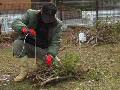 公園の剪定作業は9回目です。ひもで枝を結びます。