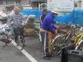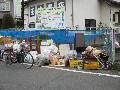 役員と一緒にゴミの整理です。自転車と地震は関係ありません。 公民館に並べたら、15台ありました。近所の方が2台持ち帰りました。 |