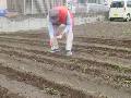 北C1の畝4列を利用して、トウモロコシの種まきです。
