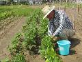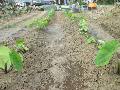 トウモロコシに肥料をまいて、土寄せをしました。 長男の嫁も種まきしたので、手入れをしっかりします。 |