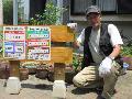 5時過ぎに起床。コーヒー入れて、HPの入力や写真のリンクをする。6時にはHPの更新を終える。自治会記録の入力をしたり、6月役員会の内容も入力する。7時半に散歩をして、3個のごみ出しとごみ置場の掃除をする。8時に朝食。庭で久しぶりの工作を始める。ごみ置場(B−5)のプレートを掲示してある看板が、腐食して壊れている。そこで自宅の厚板を利用して、頑丈な看板を作成する。板を切って組立て、防腐剤を塗る。台は羽子板ブロックなので、ボルトとナットで固定する。2枚のプレートと番号札を取付け、2時間ほどで完成した。重いので長男を呼び、一緒に所定の場所に設置する。