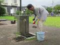 砂をスコップで上げました。しばらくは水は流れます。 |