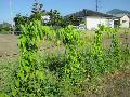 ツクネイモのツルが、支柱の1番上まで届きました。 これから茂ります。一雨欲しいところです。 |