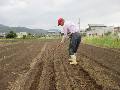 5時過ぎに起床。今日も涼しい。台所でコーヒーを入れて、責任を感じて炊事をする。HPと自治会の入力をする。写真の保存をして、会計の月末処理をする。7時に愛犬の散歩をしたら、長男の家できび団子をもらう。朝食。着替えて福井農園に行き、8時半から農作業をする。北Eにインゲンの種まき1列。東4にニンニクを1列植付けて、その隣にインゲンを1列種まきする。東2にひもを張って溝を切り、3列の畝を作る。畝1列を使って、3列のダイコン種まきをする。東3のネット2枚を片付けて、11時半に帰宅する。涼しいので、農作業は楽だった。ヤマケンの課長さんが来て書類をもらい、LED工事代金を支払う。