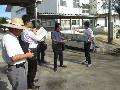 緑化コンクールの現地審査、初日です。 担当者の説明を聞きながら、校庭をめぐります。 |