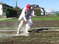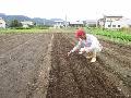 土地はたくさん空いていますから、ダイコンの種まきです。