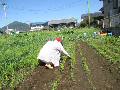 ニンジンの畝の草取りです。膝が痛くなります。 |