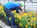 今年の台風対策で1ヶ月ほどテントを外していました。 自治会役員のT区長さんは、花の世話が好きです。 |