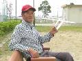 広い城山公園に行き、凧揚げの試運転をしました。 風が吹かないので、期待したように揚がりません。 |
