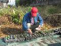 作業場でナデシコ・キンセンカ・ソラマメが育成中。 130人の校長先生の前で話をすると緊張します。 |