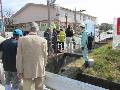 城山小学校前の歩道が拡張されます。 刈り草は90リットル袋に詰めました。 |