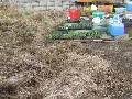 北Eに積んでいた刈り草を、手前に引き出しました。 乾燥して軽くなったら、90リットル袋に詰めます。 |