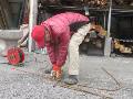 昼食・テレビは鑑定団。1時家内と徒歩で植木市見学に行く。明日が最終日なので、見学者は多い。フルーベリーの苗木を1本購入する。屋台で教え子が店を出していたので、唐揚げを購入して帰る。2時半に福井農園に行く。友人の資材置場の電源を借りて、グラインダーで鉄筋を切断開始。先月のブロック塀工事で土の中から出た、長くて太い鉄筋とトタン板2枚である。鉄筋は1mほどで切ったら、30本以上になった。トタン板も切り刻んで、指定袋に入るようにした。鉄筋はひもで束ねて、処理しやすいようにする。ダイコンを10本収穫して帰宅。5時過ぎに夕食。7時にインターネット接続会社から電話があり、指示通りにPCで検索したがアクセスできずに変更を断る。8時過ぎに休む。