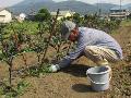 4時に起床。コーヒー入れて、自治会記録とHPの入力をする。会計整理を済ませ、昨日の会議資料を整理する。タバコ買い出しとチェリーの散歩。朝食・テレビ。8時に福井農園に行き、コスモス苗に肥料をまく。移植用の土作りをしておく。ツクネイモ用の植え穴を、トマトの畝に7個とハウスに4個掘っておく。ナス畝1列の草取りをして、肥料をまく。しばらくジャガイモを掘る。ピーマンとレタスを収穫して、ジャガイモと一緒に持ち帰る。