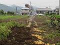 4時起床。コーヒーを入れて、ノートに記録をとってHPの入力をする。今日の計画と農作業の計画を立てる。下代3・4丁目の地図を切り貼りして、1枚にしておく。6時散歩・ごみ出し・ごみ置場の掃除・朝食・テレビ・新聞。8時になったので、草刈り機を積んで、菅原神社に出かける。神社境内を40分ほど草刈りをする。マンションのごみ置場に出ているペットボトル等を公民館に保管する。9時に帰って休憩。9時半に福井農園に行き、まず花苗に水をかける。除草剤を作って、北の作業場にていねいにかける。その後は4列目のジャガイモ掘りをする。