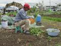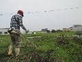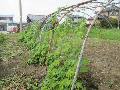 昨日の雨で、インゲンがたくさんとれました。 東4に腰を降ろして、エダマメの根と葉を切ります。 |