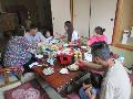 昼食・テレビ。コーヒー入れて、HPの入力をする。2時にA区長と同級生のNaくんにインゲンを届け、キュウリをもらって帰る。福井農園に行ってサニーレタスを収穫したり、オクラの草取りをして帰る。息子家族も集まり、今日は5時から孫の喜代花の誕生日祝いである。やっと1歳になった。飲んで食べて休憩。食事のあと孫が走り回って騒ぐので、かなり騒々しい。二階に避難する。8時に休む。