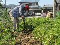 4時に起床。ノートに記録をとって、コーヒーを入れる。野菜宅配の記録・HPの入力・写真加工。役員会の資料を入力して、印刷を3枚する。ステップの資料を片付ける。6時に公民館へ行って、埋立てごみを出す。愛犬散歩・ジャンボニンニクの皮むき。朝食。ごみ置場B−1にほうき立てを取り付ける。9時福井農園に行き、北D2のジャガを1列掘る。除草剤を作り、ハウス内・トマトの溝・作業場にかける。友人が来たのでジャガを渡す。12時に帰宅。