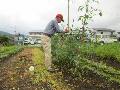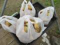ジャガイモをレジ袋に入れて、宅配しています。 作業場に除草剤です。雑草の生長は早いです。 |