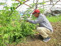 4時に起床。ノートに記録をとって、コーヒーを入れる。HPの入力と自治会の入力をする。テレビ・新聞。6時に散歩を済ませ、公民館の埋立てごみ2個を出す。朝食・テレビ。8時に福井農園に行く。強風対策とごみ処理をして、インゲンの収穫をする。地主のUさんがきて世間話。トマトのひもかけをして、ソラマメの茎を透明袋に詰め、2個が完成した。ナスの細かな草をホーで取り、12時前に帰宅する。