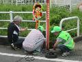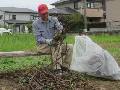 ピーマンに時間をかけて、ひもかけしました。 茎がもろくて、強風で折れることがあります。 役員6人で飛出しくんを町内に設置しました。 |