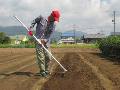 雨が降って東2の畝の表面が固くなりました。 レーキで掘り起こし、代かきで平らにしました。 せっかく発芽したニンジンですが、草に負けました。 |