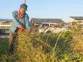 西3にはまだネットが残っています。草取りです。
