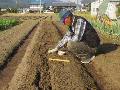 西3にソラマメ1列の種まきをしました。予定は3列。 東3に新しい畝を作り、スナップエンドウの種まきです。 |