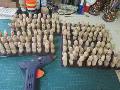 久しぶりに西部環境工場に草を持ち込みました。 40キロの600円。計算は10キロ150円です。 落花生にホットボンドで押しピンを接着しました。 |
