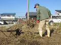 ひな人形制作の最後の状態です。 チェーンソーでツツジの株を切断しました。 |